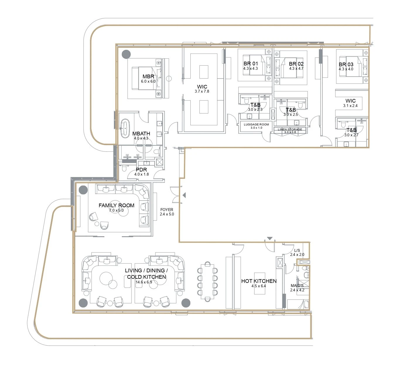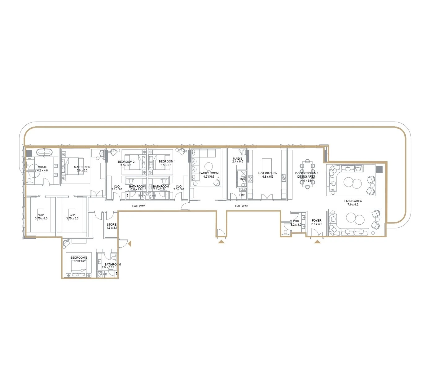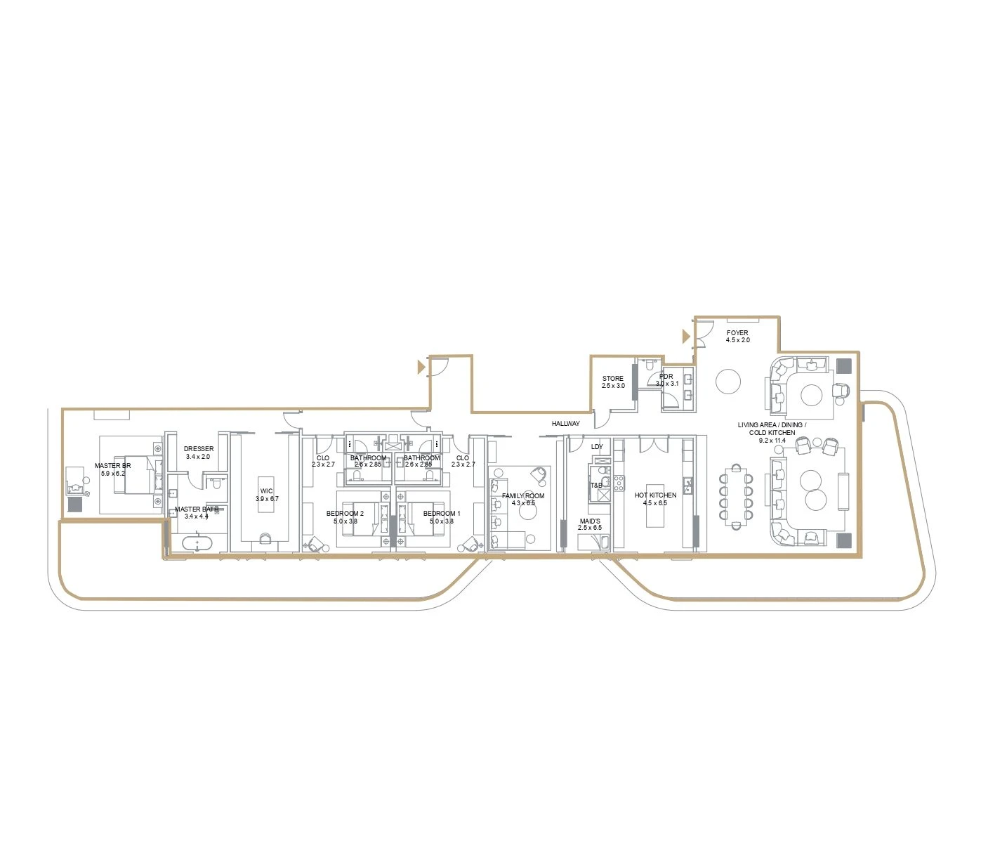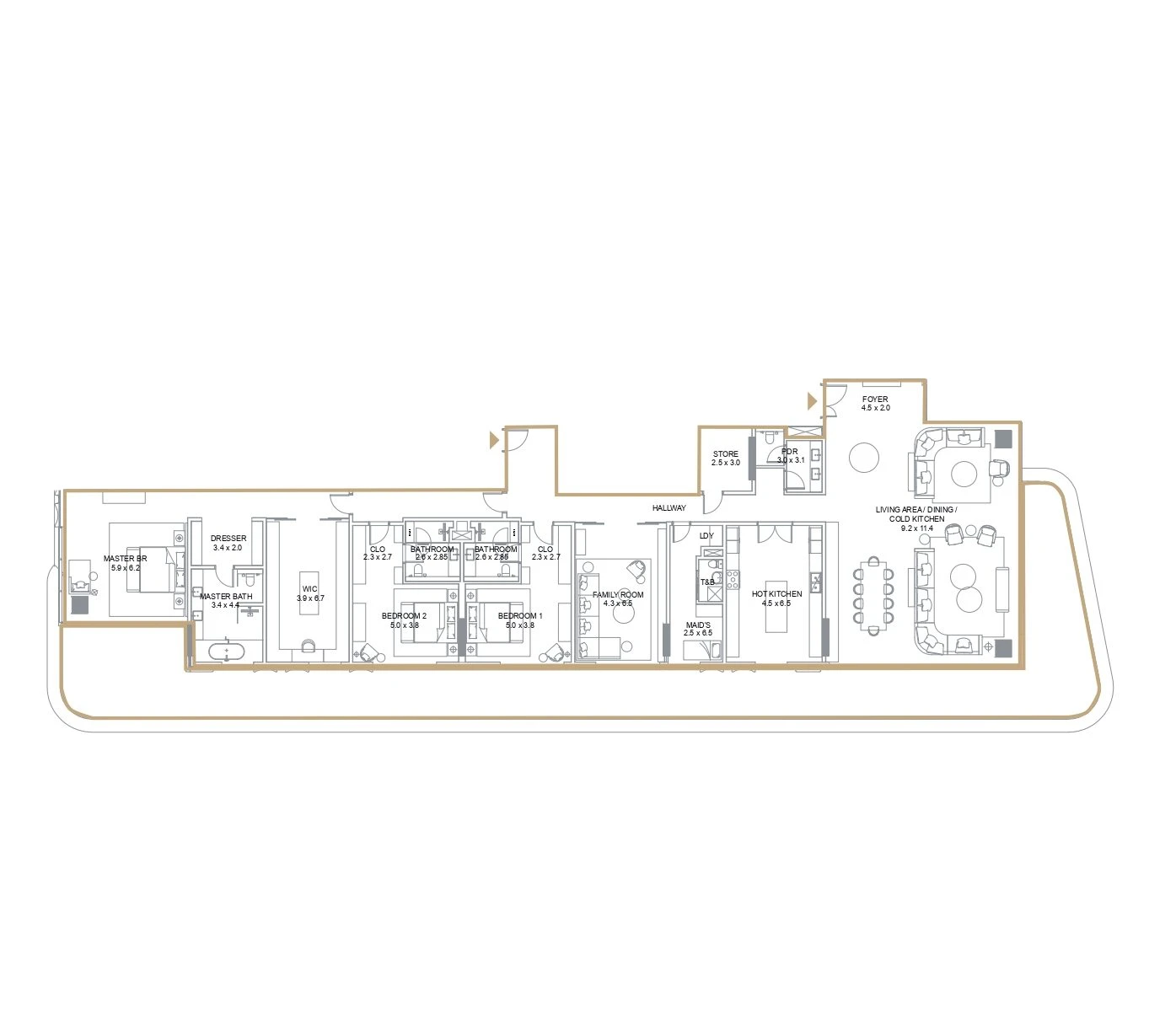 Nestled within a prime residential & hospitality enclave along the main crescent of the Palm, the 4 towers are secluded yet well connected to the surroundings. Standing tall on the fringe of the island, the buildings offer a wealth of indoor amenities spread across the ground and podium levels. Homeowners will also benefit from their proximity to an incomparable suite of recreational, hospitalitv, retail and healthcare facilities nearby.