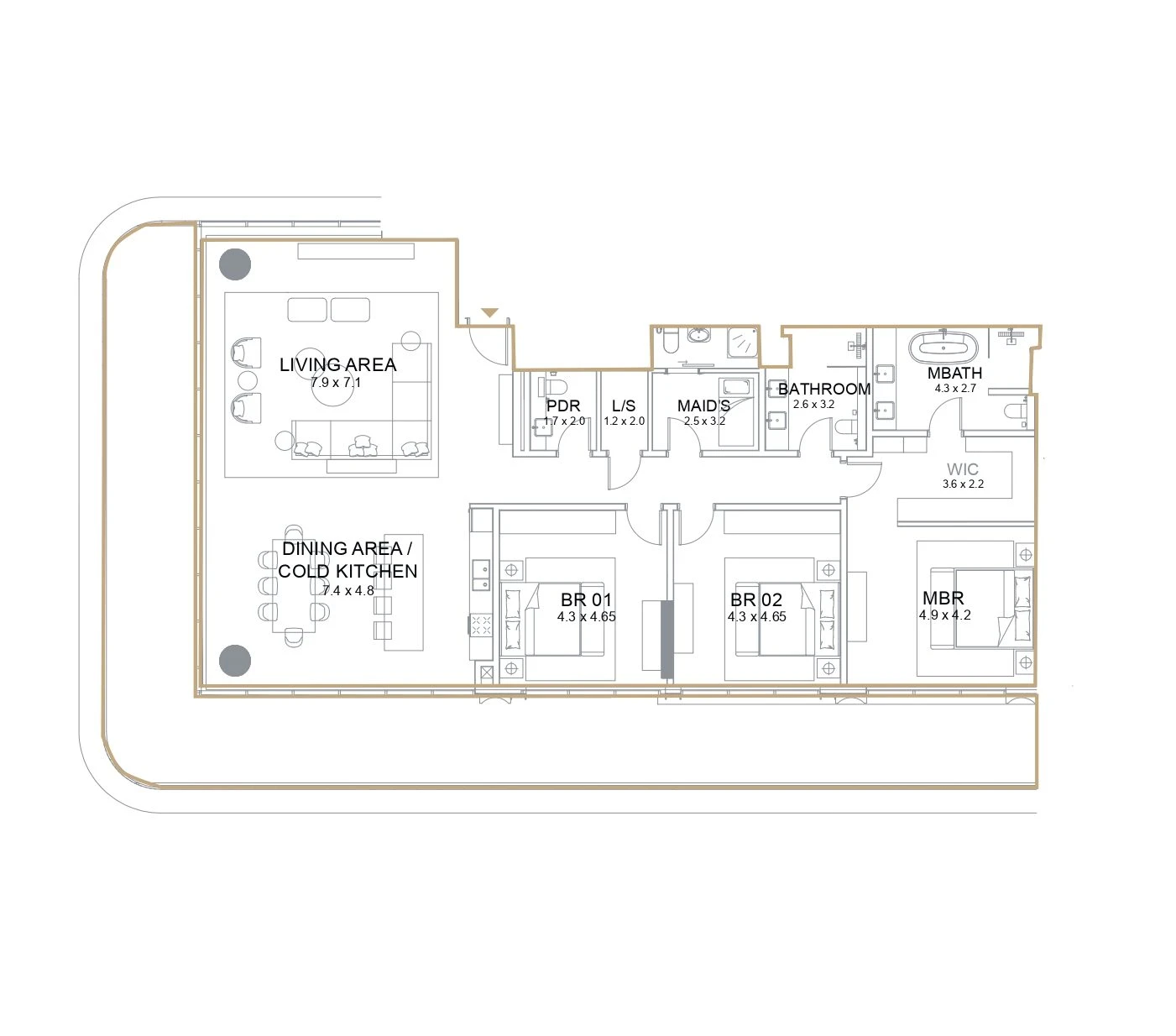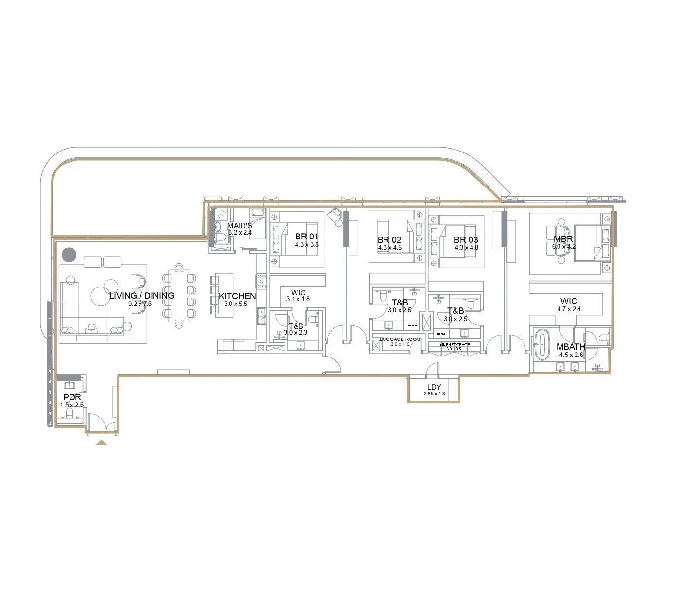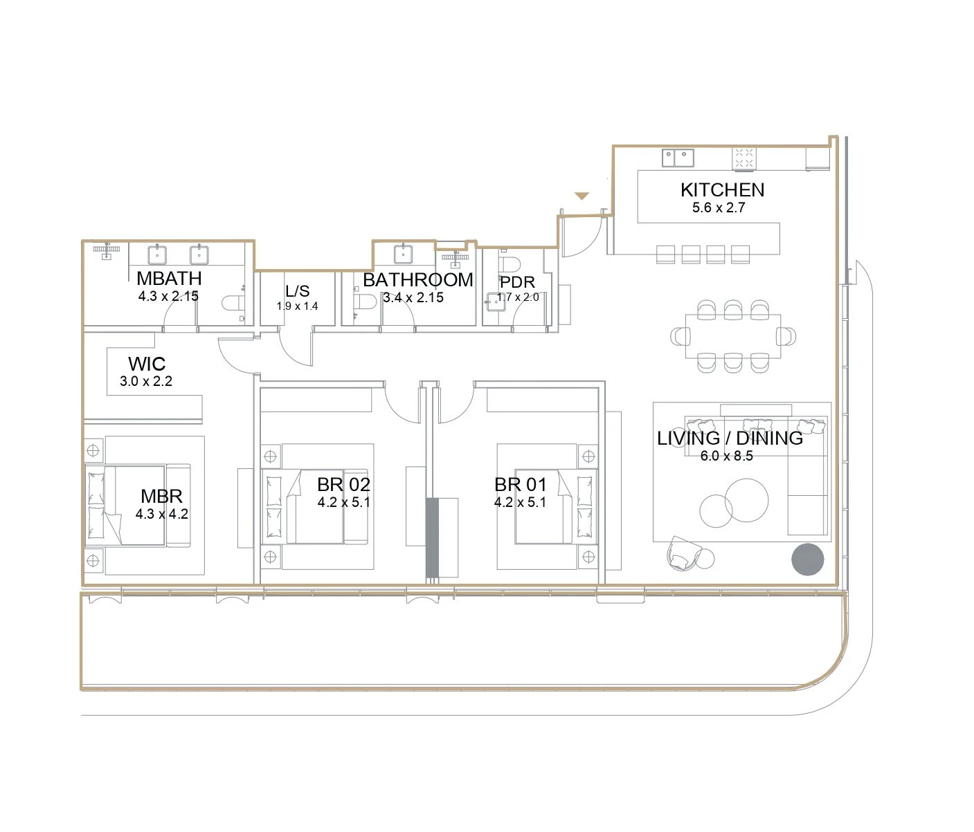 Nestled within a prime residential & hospitality enclave along the main crescent of the Palm, the 4 towers are secluded yet well connected to the surroundings. Standing tall on the fringe of the island, the buildings offer a wealth of indoor amenities spread across the ground and podium levels. Homeowners will also benefit from their proximity to an incomparable suite of recreational, hospitalitv, retail and healthcare facilities nearby.