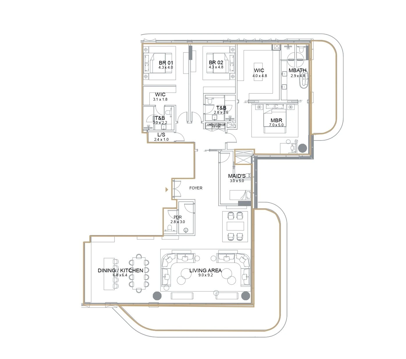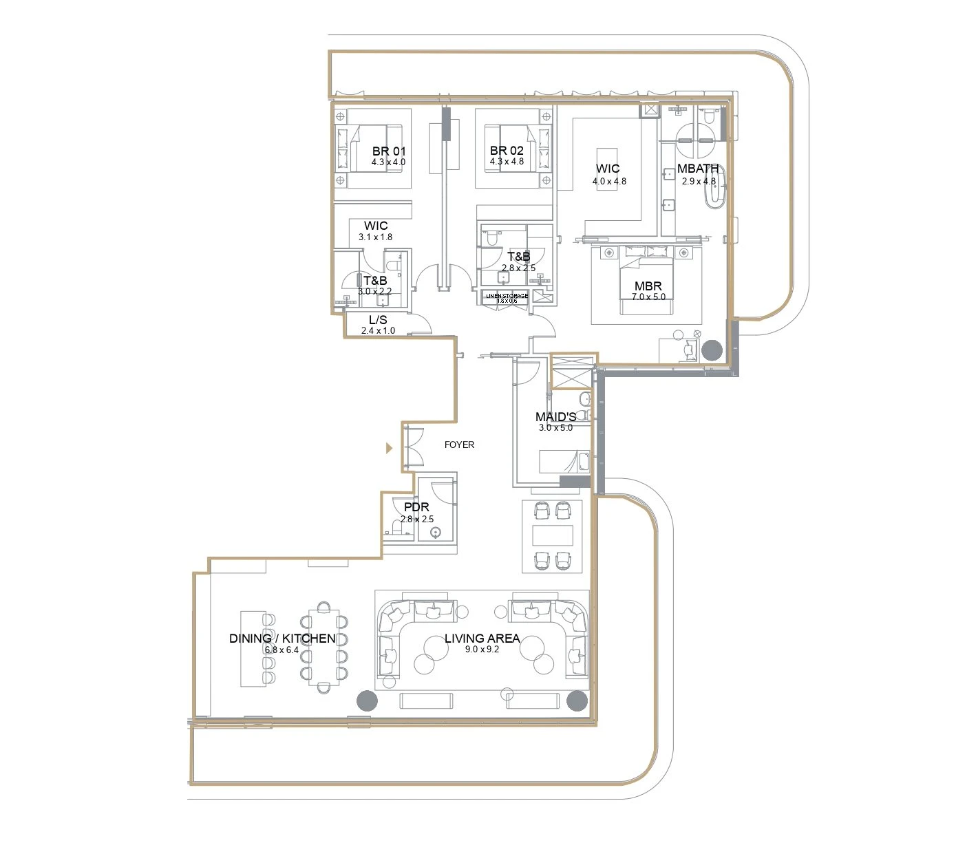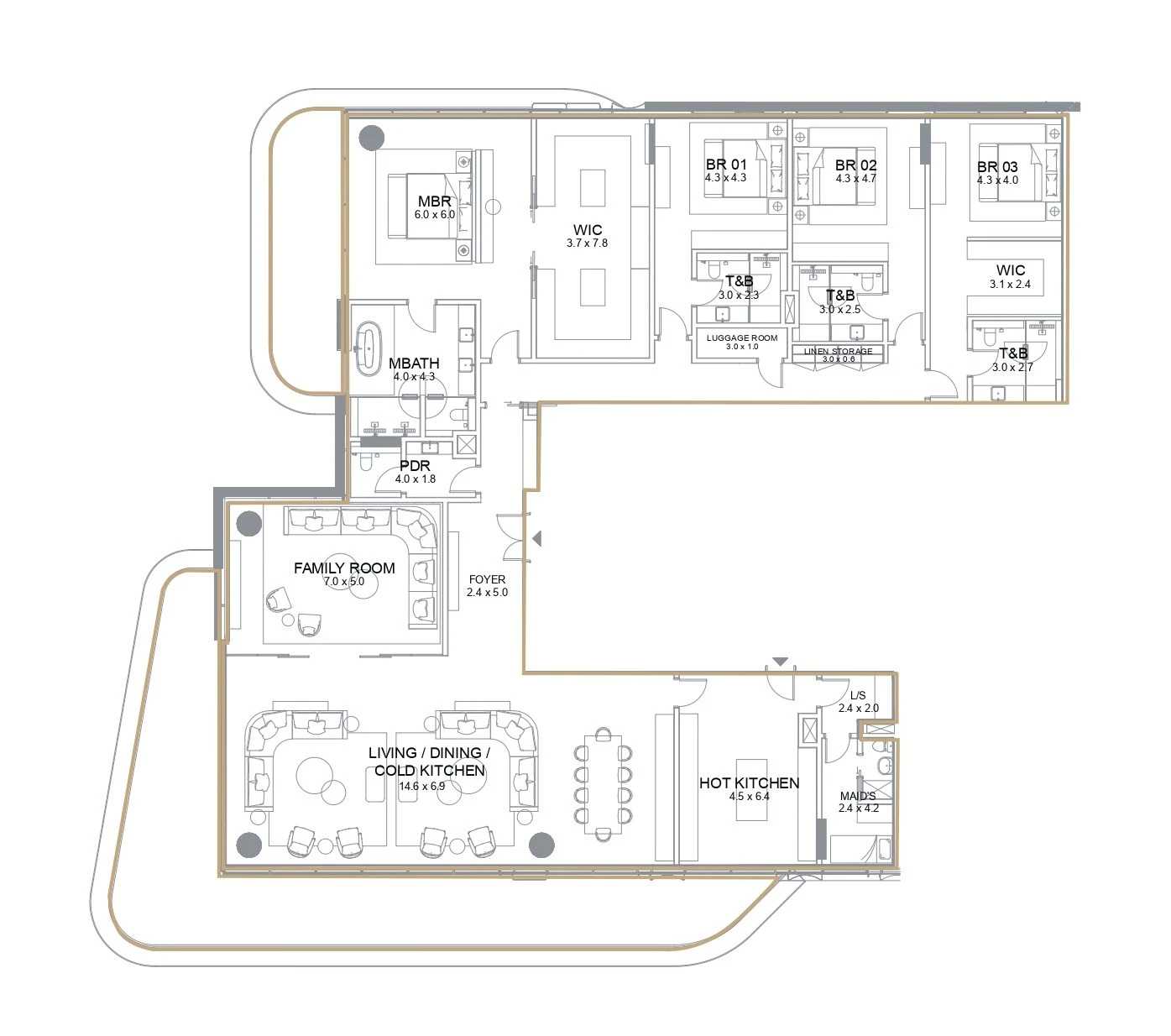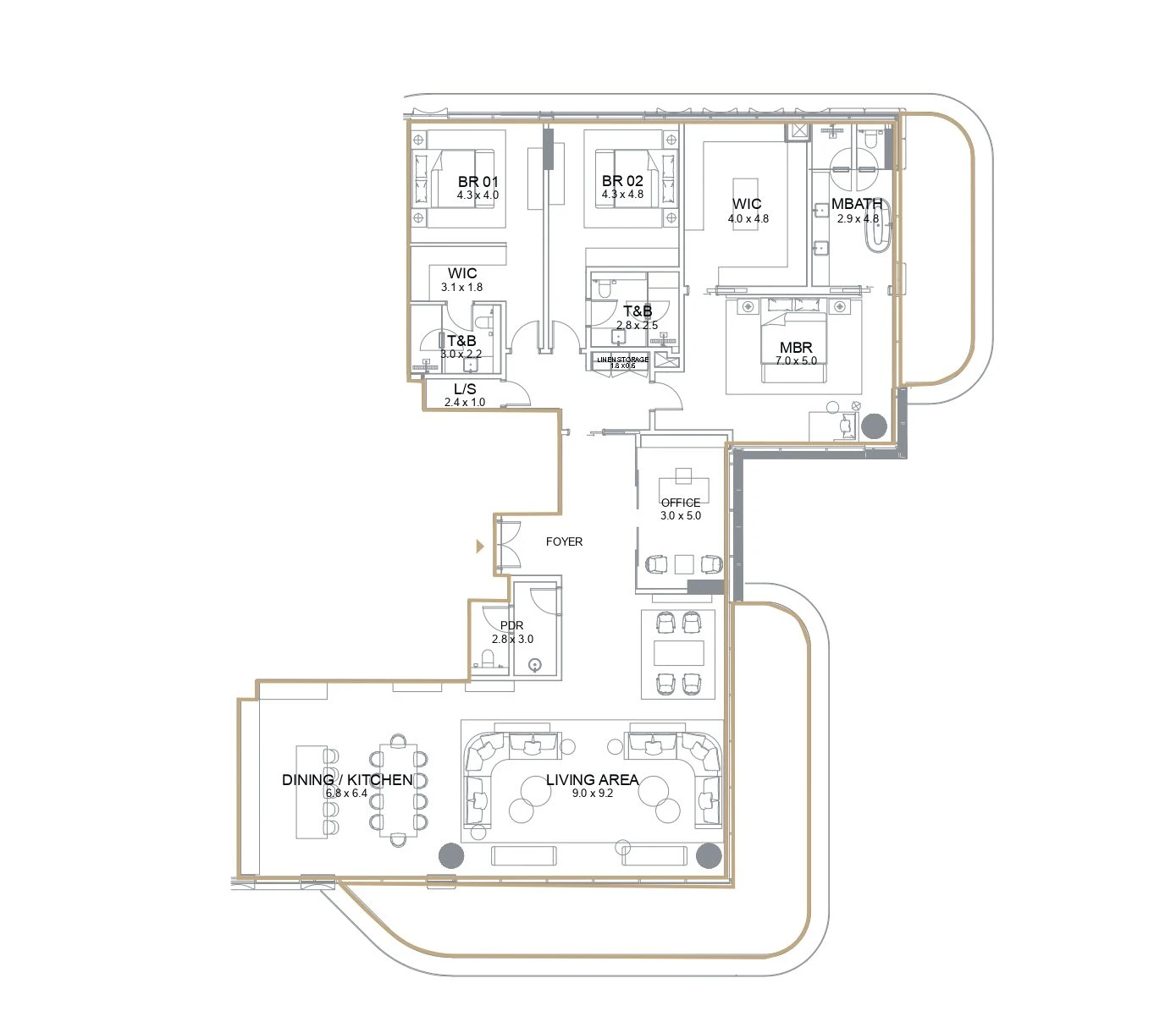 Nestled within a prime residential & hospitality enclave along the main crescent of the Palm, the 4 towers are secluded yet well connected to the surroundings. Standing tall on the fringe of the island, the buildings offer a wealth of indoor amenities spread across the ground and podium levels. Homeowners will also benefit from their proximity to an incomparable suite of recreational, hospitalitv, retail and healthcare facilities nearby.